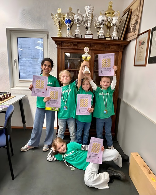 Alle Schachelschweine zeigten tolle Leistungen und zum Teil deutliche Verbesserungen: Lea steigerte sich um einen halben Punkt zum letzten Kids-Cup, Konstantin gleich um einen ganzen. Vielleicht war das ja nur sein Warm-up – der Youth-Cup am nächsten Tag wird’s zeigen. Und als besonderes Sahnehäubchen: In der Schulwertung erreichte die Schule Genslerstraße den 2. Platz! Ein großartiger Erfolg für unsere Nachwuchsschweine – Teamgeist zahlt sich eben aus! 🏫🥈